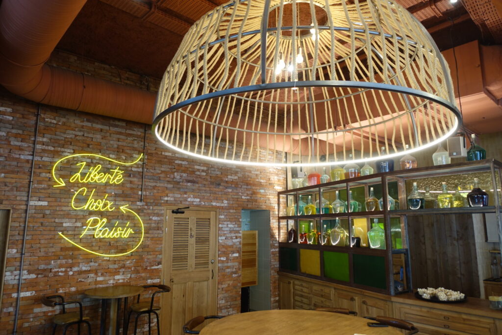 Alors on s’installe sous une suspension en laiton, sur une balançoire ou une chaise confortable, entre une verrière baignée de lumière et des murs au charme brut et on se régale ! La déco pioche dans l’univers industriel et végétal, entre béton doux, touches de vert et bois chaleureux. Un cadre parfait pour analyser en semaine, sans culpabilité.