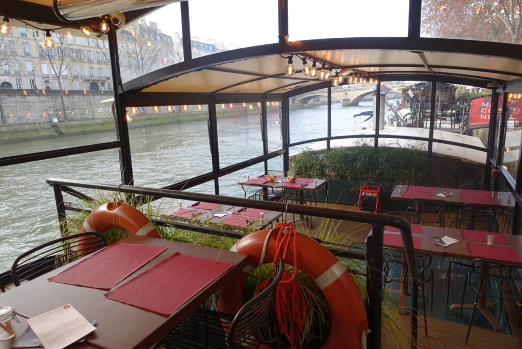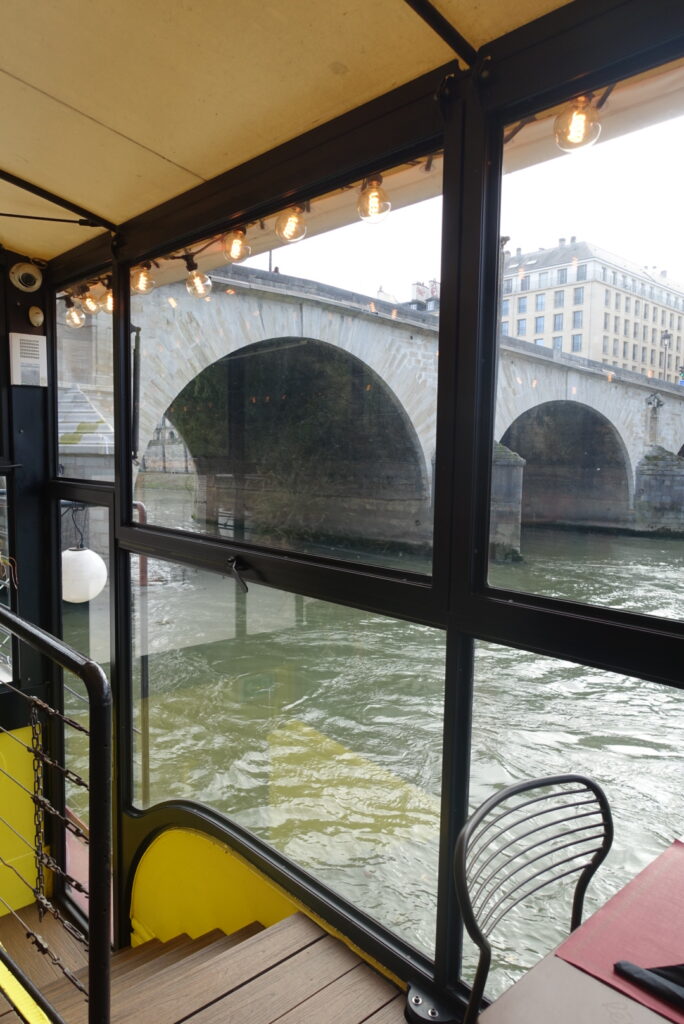 Sous la verrière, dans la salle réchauffée par la lumière du fleuve ou sur la terrasse qui offre l’un des plus beaux panoramas de Paris, l’atmosphère se fait légère, joyeuse et résolument parisienne.