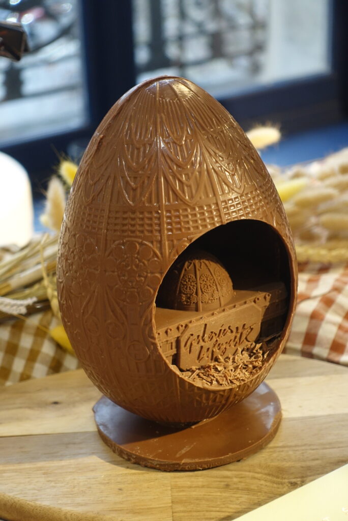 Chacun revisite l’œuf de Pâques avec son écriture propre : pralinés intensément torréfiés, ganaches soyeuses, décors délicatement sculptés, touches florales ou éclats croustillants.