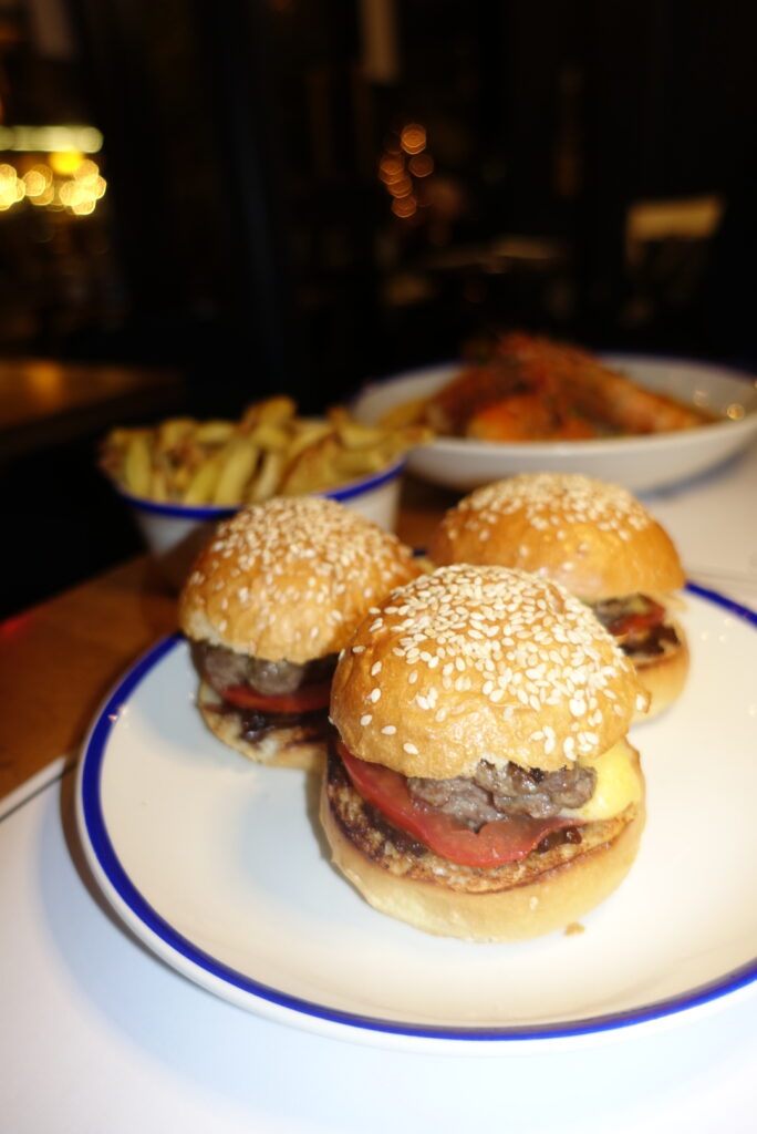 Les gambas “Black Tiger” sautées à la plancha s’offrent un bain de bisque maison onctueuse, pendant que le trio de mini burgers “Black Angus” bacon & cheese, accompagnés de frites maison dorées à souhait, met tout le monde d’accord.