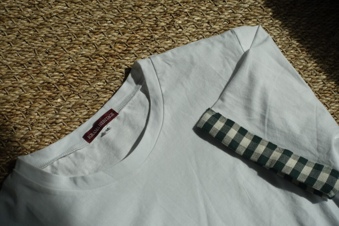 Le détail qui fait la différence ? Les deux fines bandes issues de nos Kramas Pop cousues aux extrémités du t-shirt.