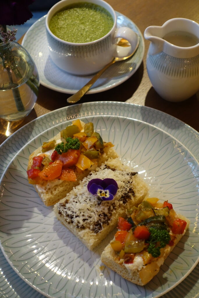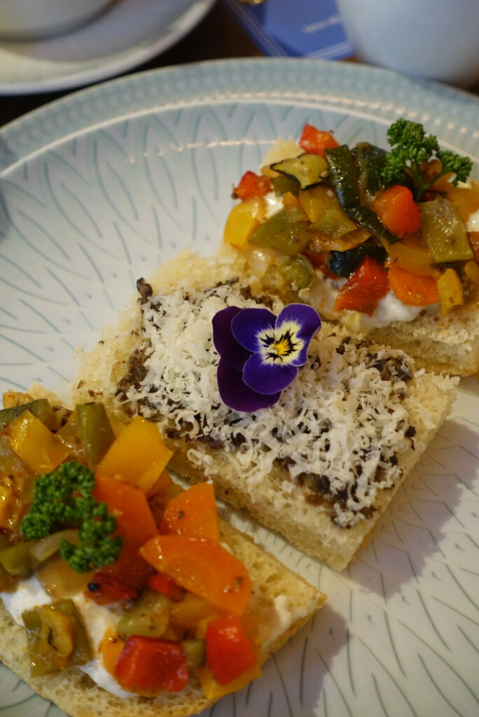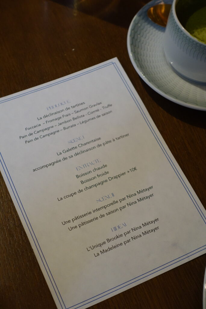 Le Goûter des Arts débute par une sélection de tartines artisanales aux accords délicats. Puis vient la galette charentaise, généreuse et authentique, accompagnée de ses pâtes à tartiner. La boisson choisie prolonge ce moment suspendu, avant que n’arrive le cœur du spectacle : deux créations emblématiques de la cheffe, l’une intemporelle, signature de son savoir-faire, l’autre saisonnière, reflet de son inspiration du moment.