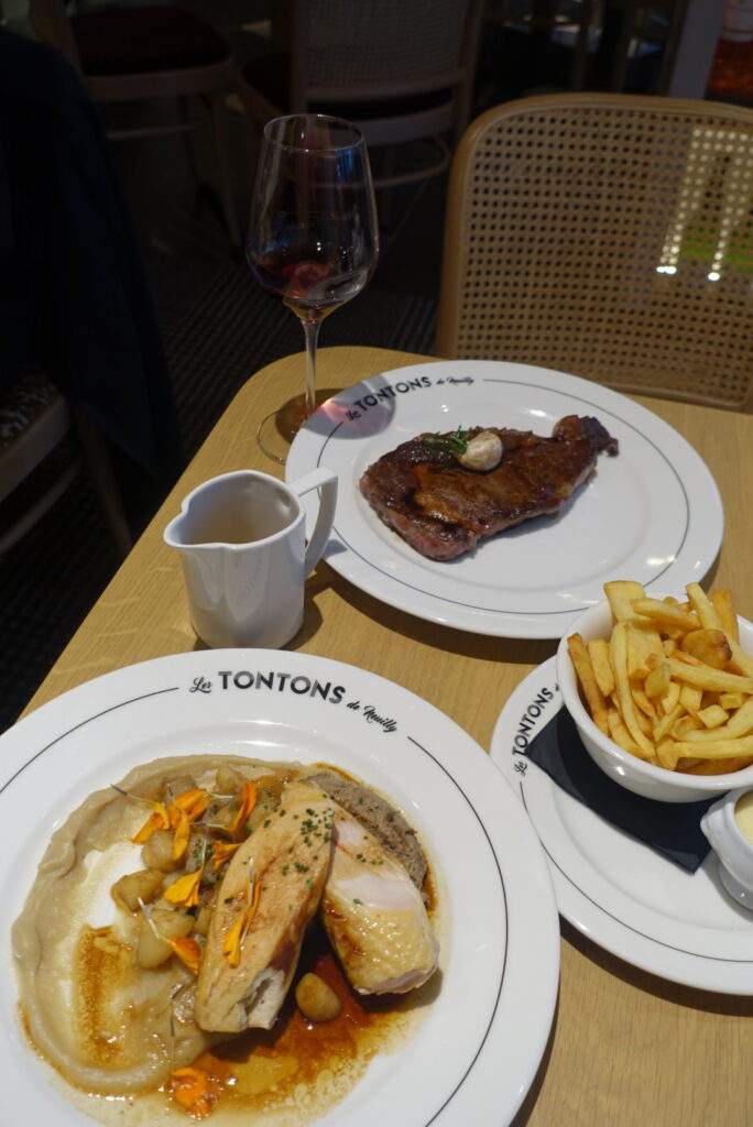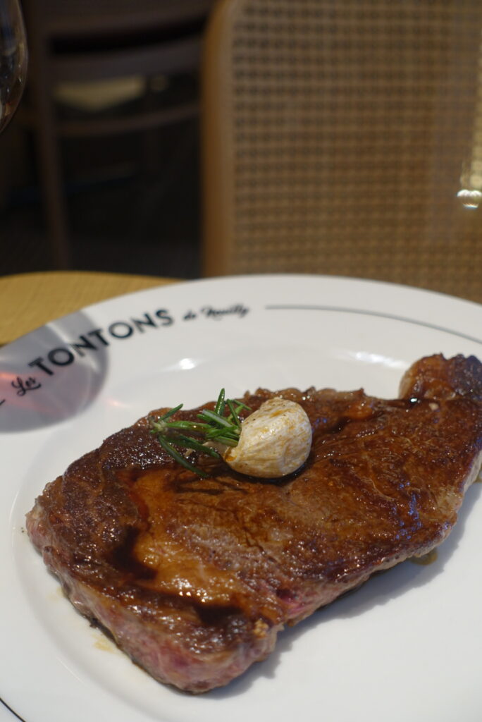Côté plats, Les Tontons de Neuilly savent jouer sur la générosité et la précision des cuissons. La noix d’entrecôte “Frisonne” de 300 g, servie avec sa sauce au poivre et ses frites maison dorées à souhait, séduit les amateurs de viande par son équilibre parfait entre tendreté et caractère. Chaque bouchée révèle le goût authentique de la viande, tandis que les frites, croustillantes à l’extérieur et moelleuses à l’intérieur, complètent l’assiette avec un charme irrésistible.