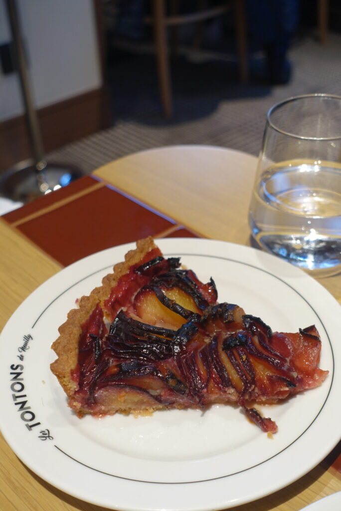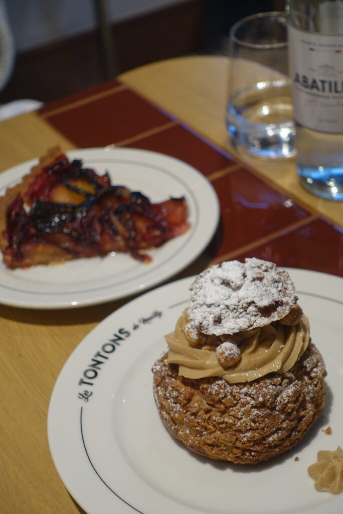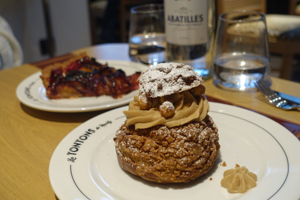 Au moment du dessert, la maison révèle une facette plus frivole. Le chou crème légère au praliné joue la partition de la gourmandise sans lourdeur. La coque dorée cède délicatement sous la cuillère, laissant jaillir une crème presque mousseuse, relevée par le croquant des noisettes caramélisées. Une bouchée qui fond et craque tout à la fois, comme un éclat de fête posé au milieu du repas.Et parce que les plaisirs simples n’ont jamais perdu leur noblesse, la tarte aux prunes du jour clôt la danse avec une élégance de saison. Les fruits, légèrement compotés, déposent leur acidité solaire sur une pâte subtilement sablée. C’est une tarte comme on en rêve : fraîche, délicate, domestiquée par un savoir-faire discret mais affirmé.