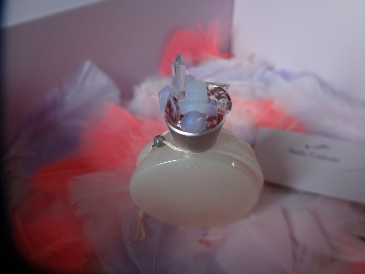 Fraîchement laissée à l’abandon, cette chambre garde en elle la trace invisible d’une élégante maquillée, parfumée et assurément pressée. Peut-être est-elle partie rejoindre son amant… Vous avancez pour contempler le joyeux bazar sur la coiffeuse : poudres, fards, rouges à lèvres sont étalés devant son imposant miroir… Vous apercevez un flacon rose nacré étincelant… Miss Me Discrète ?…