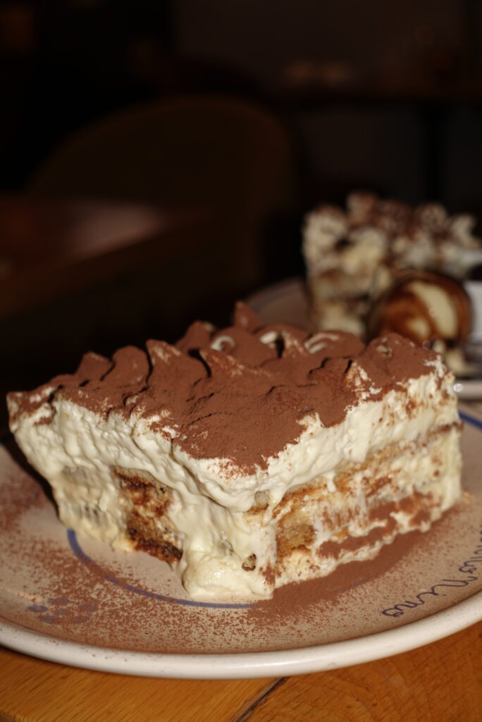 Le Tiramisù au café, le traditionnel, joue la carte de la fidélité : biscuits imbibés, mascarpone aérien, cacao poudré. Franc, sans détour.