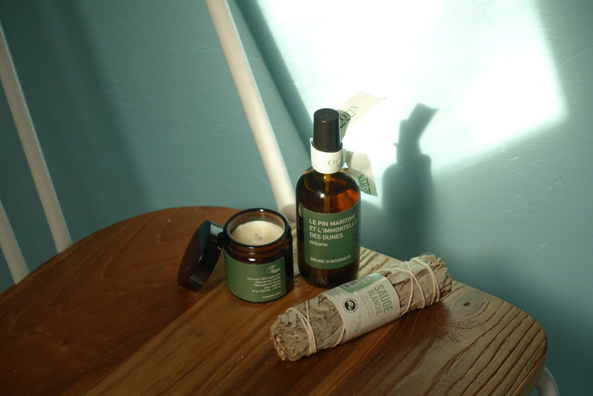 Pour compléter ce rêve éveillé la brume d’intérieur Océopin est idéale. On la pulvérise sur les oreillers, les rideaux et dans toutes les pièces de la maison. Son parfum végétal et salin, entre terre et mer sublime l’ambiance olfactif de son intérieur.