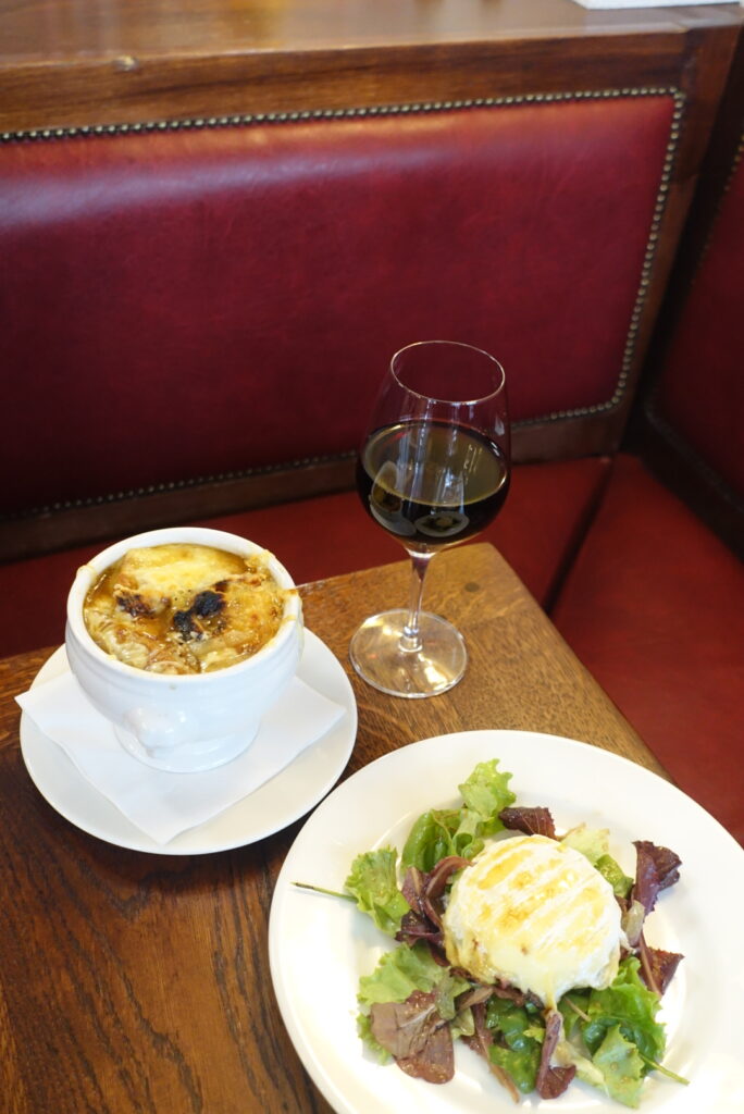 Côté carte, on oscille entre tradition bichonnée et tentations réconfortantes. La soupe à l’oignon gratinée vous enveloppe dans un nuage de douceur dorée, tandis que le Saint-Marcellin fermier rôti, accompagné de son mesclun et d’une délicate sauce au miel, joue les équilibristes entre fondant, caractère et gourmandise.